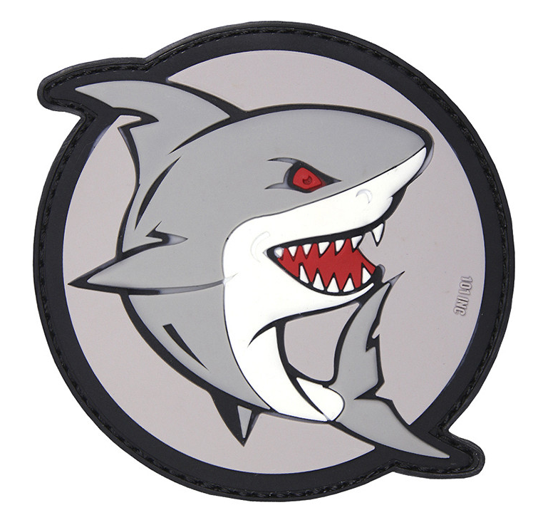 Produktinformationen "Klettabzeichen Hai - grau/rot"