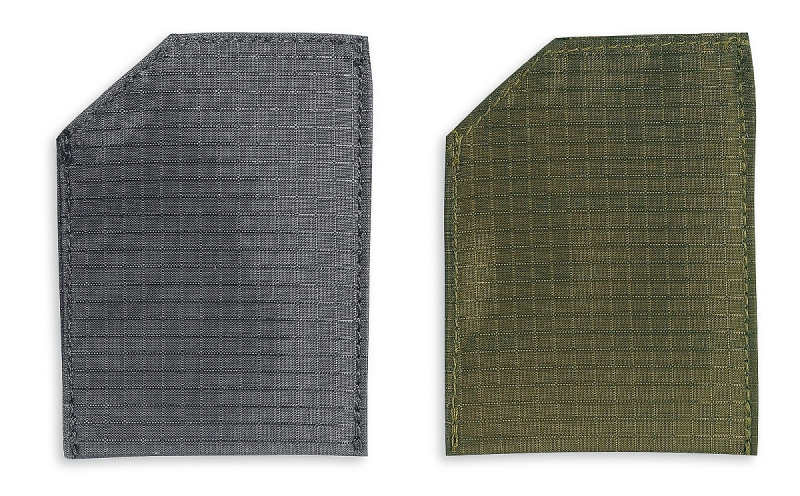 Datenschützende Einschubhüllen im Kreditkartenformat. Auslieferung im farblich sortierten 2er-Set. (1 x schwarz / 1 x oliv)