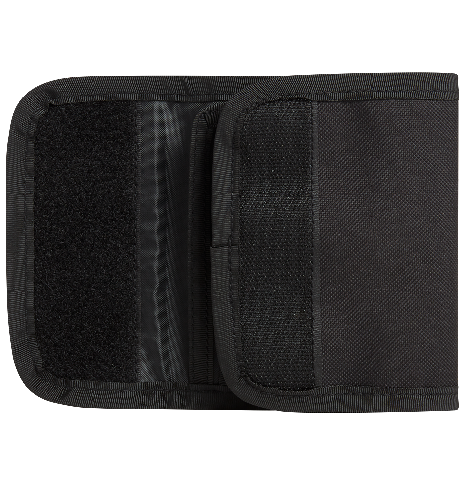 robustes 600DEN Polyester Material / innenliegendes Münzfach mit Reißverschluss / rückseitiges Netzfach für Dokumente / 3 Kartenfächer / 2 Zusatzfächer / 2 Geldscheinfächer / 3 elastische Bänder / D-Ring