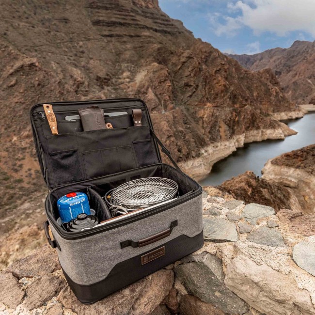 Individuell einstellbare Trennwände bieten maximale Flexibilität, die es dir ermöglicht, deine Ausrüstung sicher zu transportieren, egal ob es sich um den Atago Gasgrill oder das Dimego Topfset handelt – beide finden hier problemlos Platz. Zudem ermöglichen dir die seitlichen Tragegriffe, dein Kochabenteuer überallhin mitzunehmen.