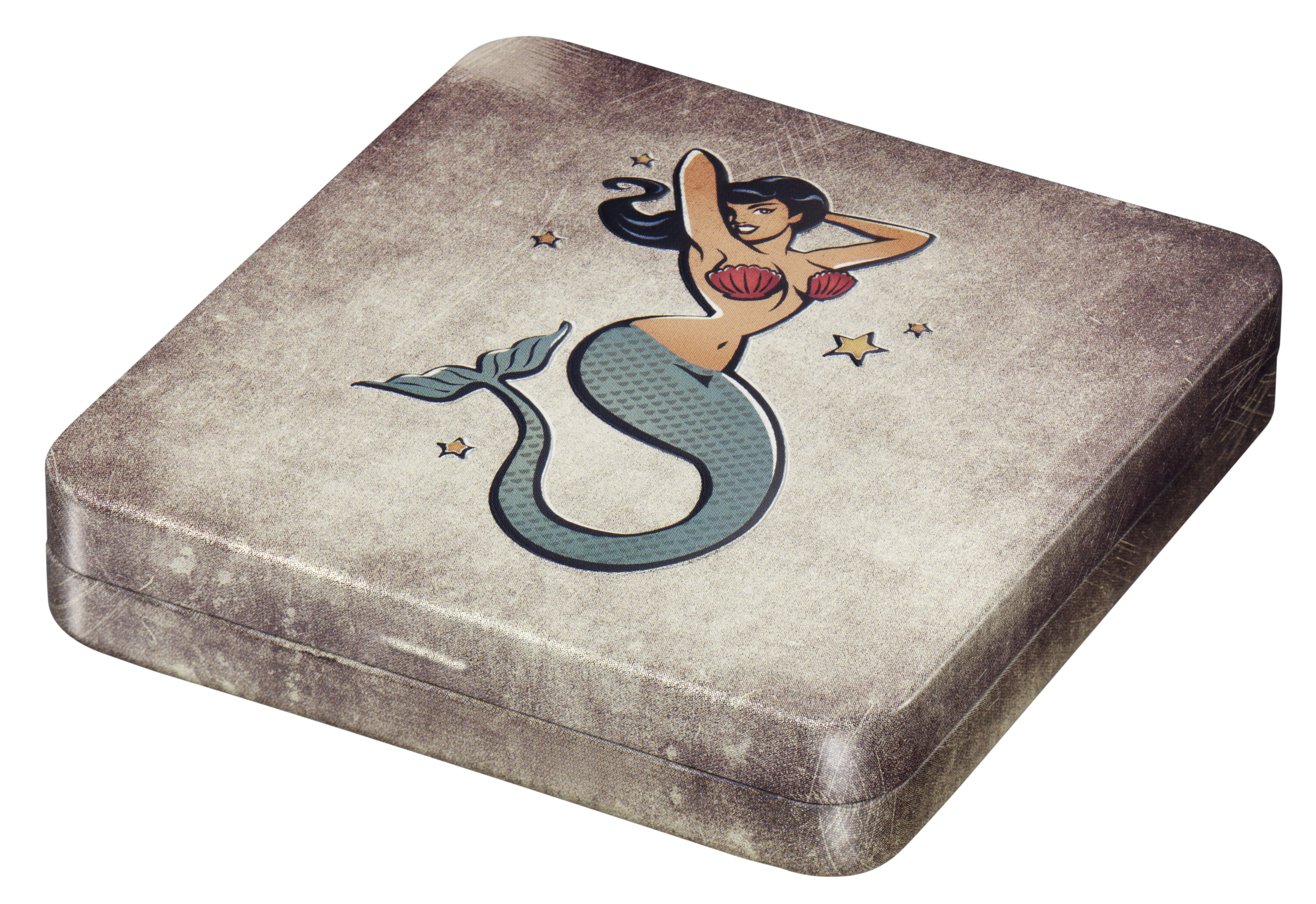 Die eckige Dose im Meerjungfrau-Design ist aus stabilem Weissblech gefertigt. Das stylische Accessoire passt in jede Tasche und begleitet dich überall hin. Im praktischen Metalletui sind Elektronik, Schmuck, Wertsachen, Hygieneartikel und andere kleine Utensilien unterwegs gut aufgehoben.