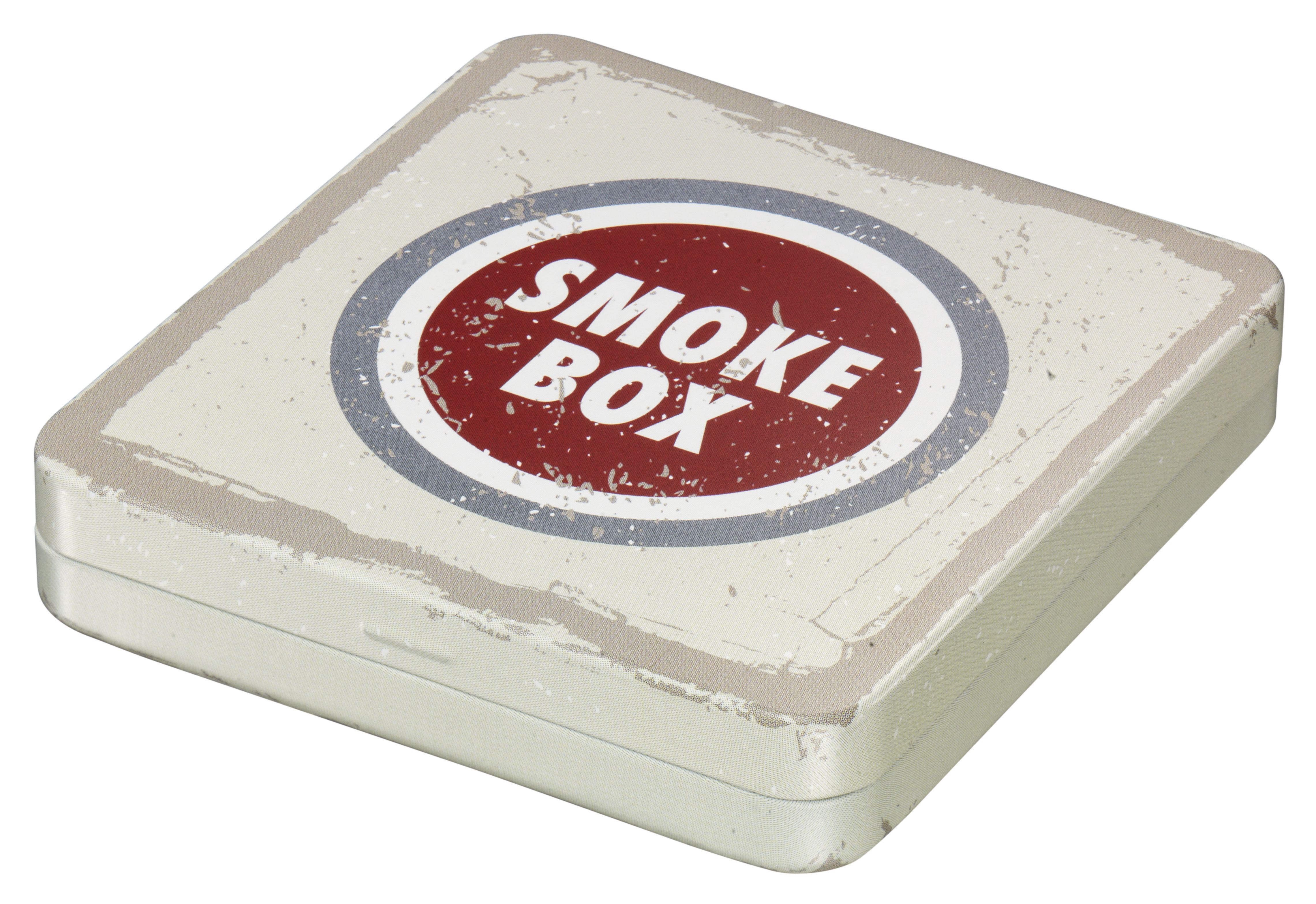 Die eckige Dose im Smoke-Design ist aus stabilem Weissblech gefertigt. Das stylische Accessoire passt in jede Tasche und begleitet dich überall hin. Im praktischen Metalletui sind Elektronik, Schmuck, Wertsachen, Hygieneartikel und andere kleine Utensilien unterwegs gut aufgehoben.