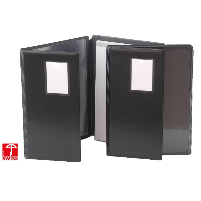 Unsere Gefechtsmappe „Swiss Army“. Das Original. Die Schreibmappe tarnfarbig oder in zivilem Schwarz. Der ideale Führungs- und Organisationsbehelf für militärische und zivile Kader, mit kariertem Schreibblock.