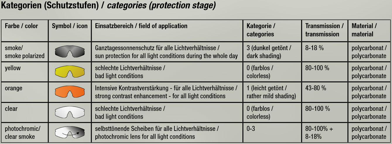 - Polycarbonatscheiben mit Antifog/Antiscratch-Beschichtung- 100% UVA-, UVB- und UVC-Schutz bis 400 nmMaterial Fassung: PC impactMaterial Scheibe/n: PolycarbonatWechselscheibe/n: orange + clearRahmenfarbe: black/schwarzGewicht: 26gZubehör: Mikrofaserbeutel + Etui