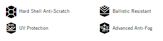 8. Erfüllt die ballistische Sicherheitsnorm MIL-PRF 32432 sowie die Norm ANSI Z87.1 (Aufprall).