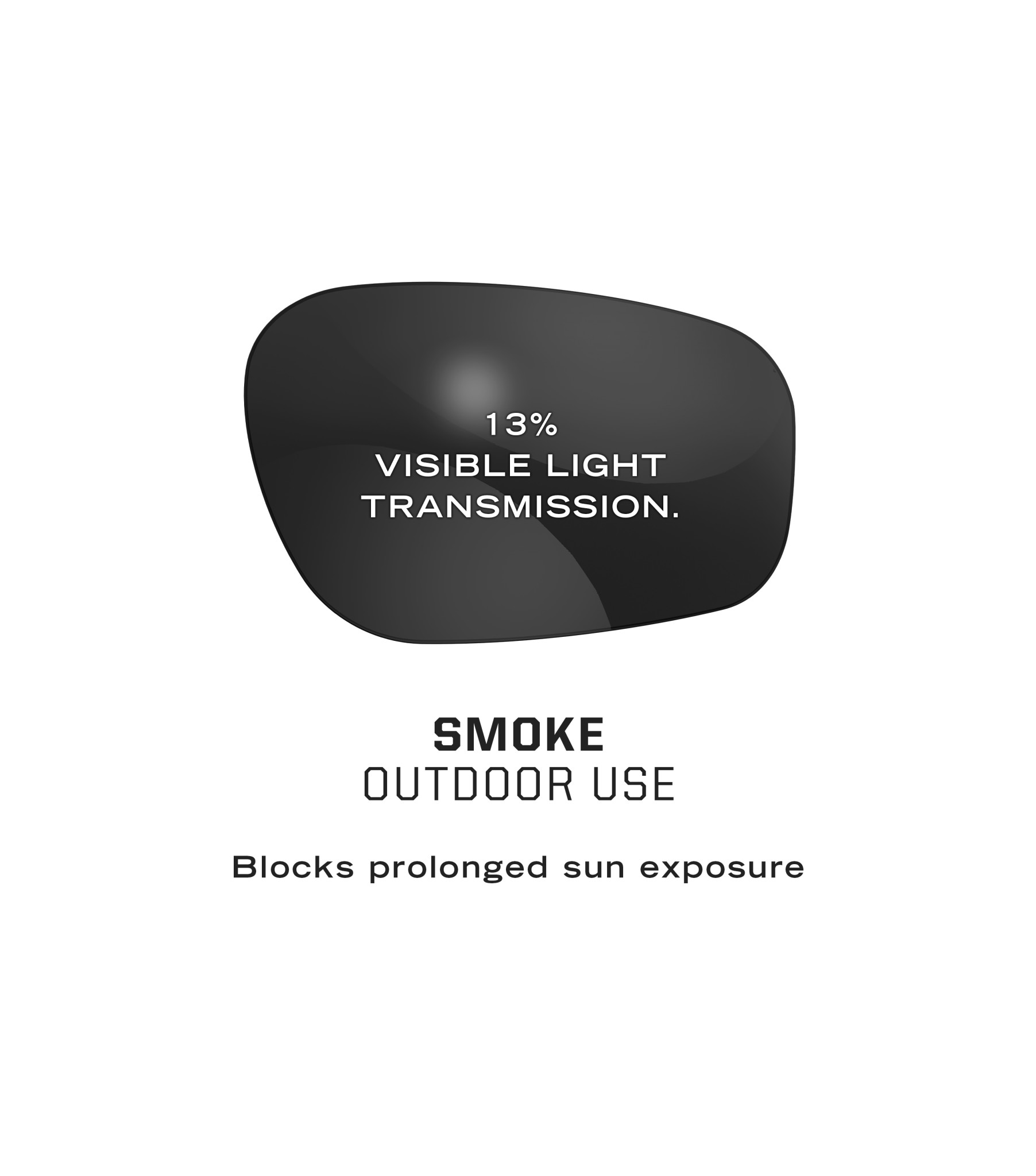 6. Dunkle, rauchfarbene Gläser blockieren längere Sonneneinstrahlung mit 13 % Durchlässigkeit für sichtbares Licht.