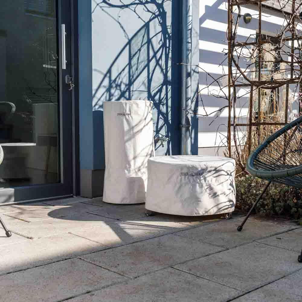Gefertigt aus robustem Ripstop-Gewebe, ist die Feuerhand Abdeckhaube witterungsbeständig und bei Verschmutzung leicht zu reinigen. Sicher wartet der abgekühlte, gereinigte und trockene Pyron unter der Hülle auf den nächsten Einsatz als Feuerstelle für angenehme Stunden. Dank des dezenten Naturtons in beige fügt sie sich ideal in deine individuelle Terrassen- und Gartengestaltung ein und sorgt für eine aufgeräumte Umgebung.