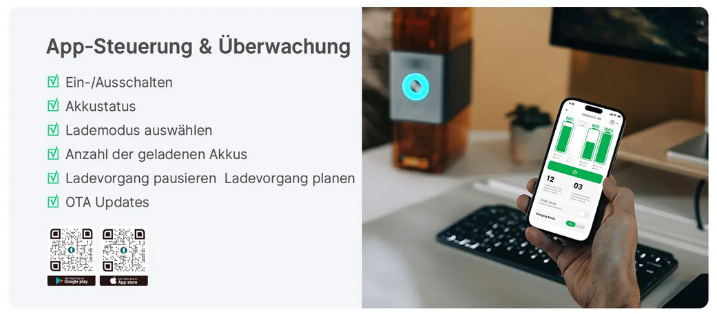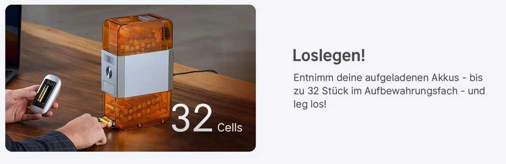 - Engagement für die Umwelt: Unterstützt die nachhaltige Nutzung von Akkus, reduziert Abfall und sorgt mit jeder Ladung für eine nachhaltigere Zukunft