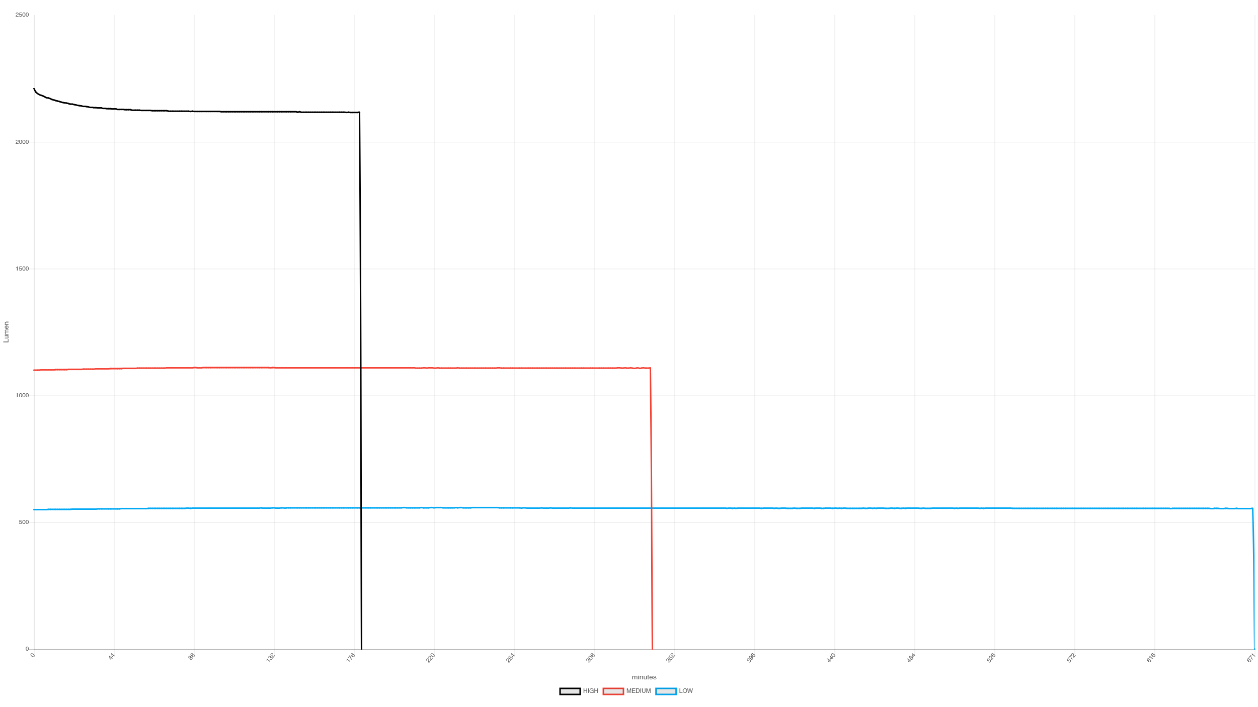 Lichtleistungs- stufen: Hoch: 2200lm, Mittel: 1100lm, Niedrig: 550lm