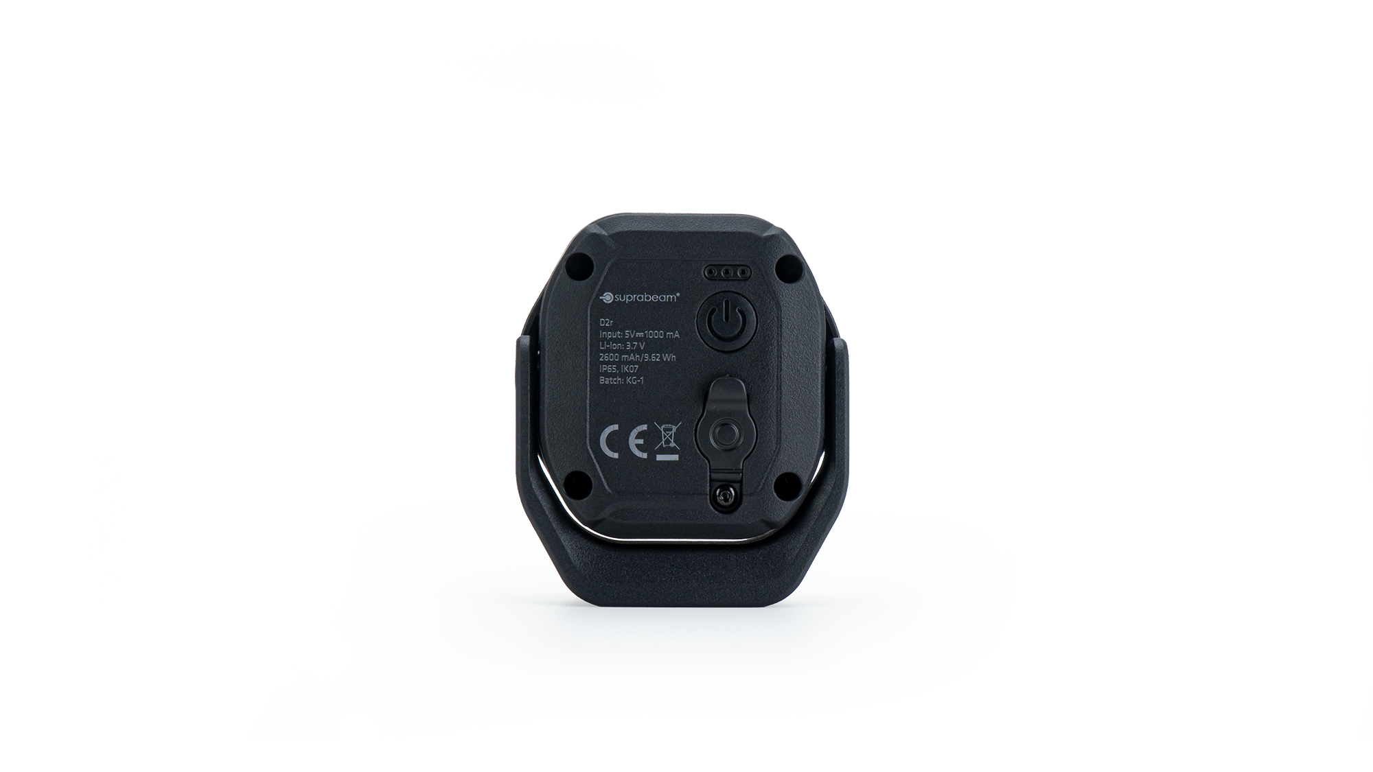 Die D2r verfügt über ein Flutlicht mit drei Lichtstufen und einen leistungsstarken Punktstrahl für Inspektionsarbeiten. Das Licht hat einen CRI-Wert von +80 und zeigt Farben sehr genau an, was viele Arbeiten erheblich erleichtert. Der Batteriestatus wird auf der Rückseite angezeigt und der Akku wird mit einem USB C-Kabel aufgeladen.