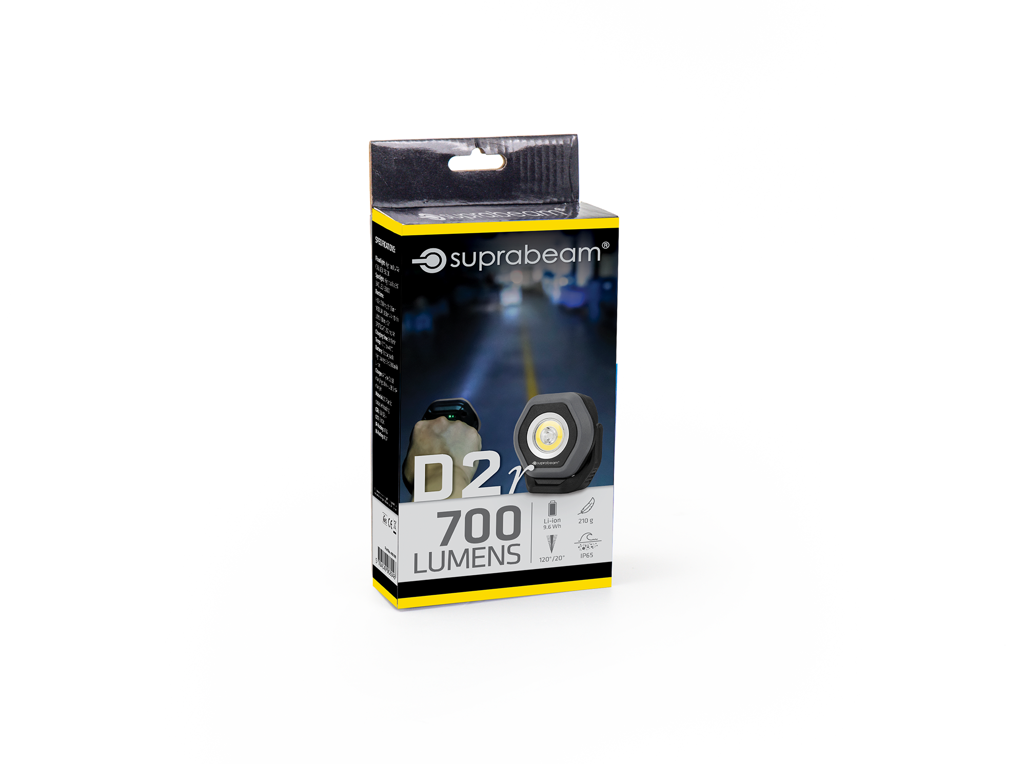Die D2r hat sowohl ein 20 ° Spotlicht wie ein 120 ° Flutlicht. Darum ist sie ideal sowohl als Inspektions wie auch als Arbeitslicht.