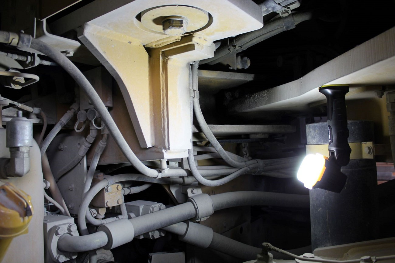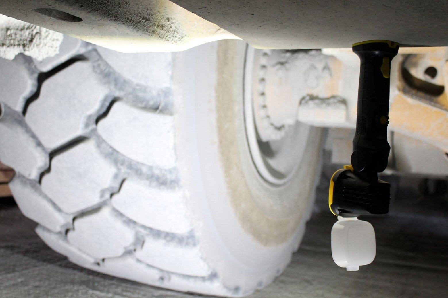 Wiederaufladbare COB LED Arbeitslampe mit Diffusorkappe zur optimalen räumlichen Ausleuchtung.