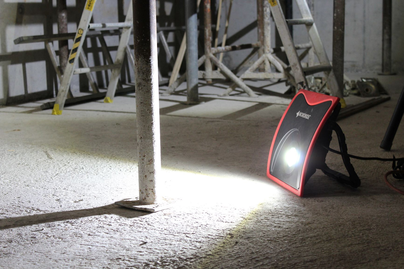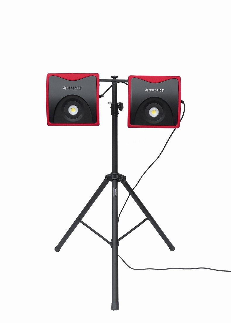 Eigenschaften- Leuchtstarke 5000 Lumen in gleichmässiger Ausleuchtung (Linsentechnologie)- Sehr angenehmes Arbeitslicht (5700°Kelvin)- 2 Leuchtstärkestufen- Bruch- und stosssicheres Gehäuse- Kräftiger, vulkanisierter Gummischutzrahmen- 2× 230 V Steckdosen- Verstellbarer Ständer für flexible Ausleuchtung- Ständer, Tragegriff und Kabelhalter- Energieeffizienzklasse E