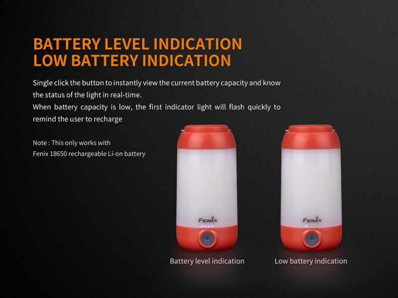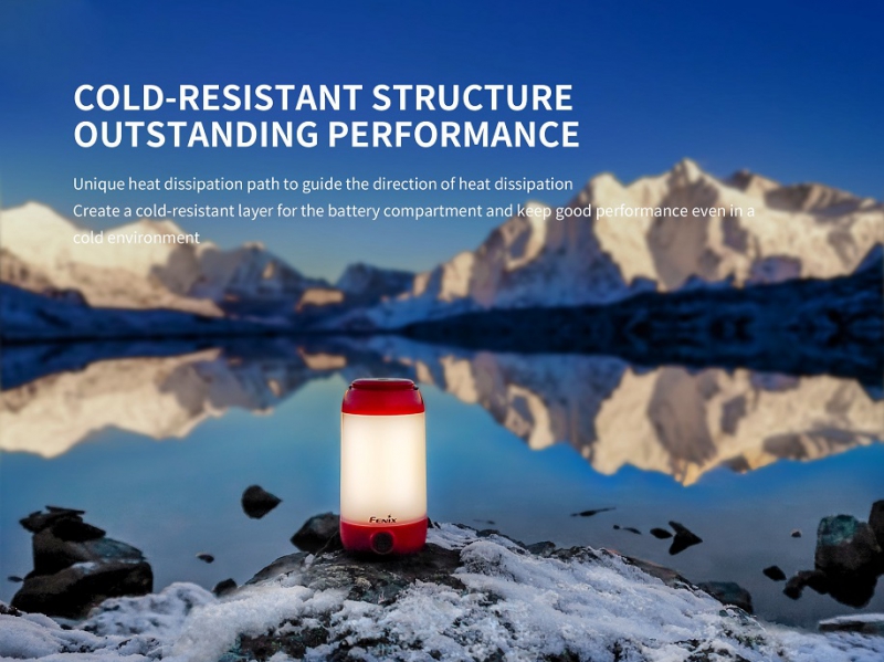 Die Fenix CL26R ist robust, kälteresistent und spritzwasserdicht (IP66) und somit die perfekte Campingleuchte. Sie liefert bis zu 400 Lumen und erleuchtet einen Umkreis von bis zu 25 Meter. Betrieben wird die Lampe von einem Fenix 18650 Akku (im Lieferumfang) oder von zwei CR123 Batterien. Mit dem Lithium-Akku schafft die Lampe eine maximale Brenndauer von 400 Stunden und lässt sich anschliessend ganz einfach via Micro-USB-Port direkt in der Lampe aufladen. Die CL26R verfügt insgesamt über 8 verschiedene Leuchtmodi, die ganz einfach über den Knopf unten an der Lampe gewechselt werden. Neben einer neutralweissen LED sitzt in der Campingleuchte ebenfalls eine rote LED. Zusätzlich kann mit der CL26R auch Licht gegen unten (Downlight) erzeugt werden. Dank dem Bügel oben an der Lampe, dem magnetischen Kopf und einem Stativgewinde lässt sich die Leuchte nahezu überall anbringen.