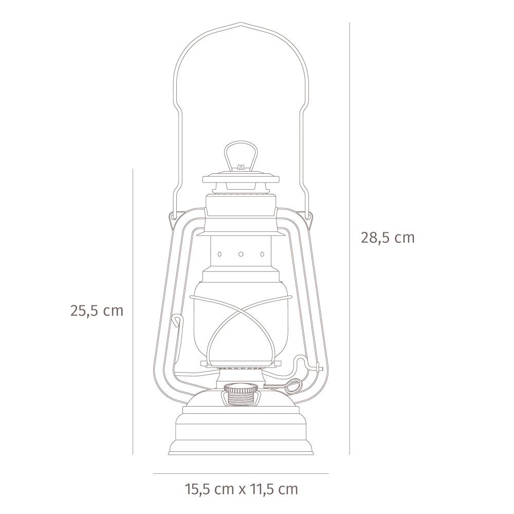 Seit über 100 Jahren wird die Feuerhand in Deutschland gefertigt und hat deswegen schon lange Kultstatus. Ihre raffinierte Konstruktion garantiert einen sparsamen Petroleumverbrauch, sodass die Feuerhand mit einer Tankfüllung etwa 20 Stunden lang brennt. Besonders widerstandsfähig gegen Rost ist die wetterfeste Sturmlaterne durch das galvanisch verzinkte Material, welches bei diesem Modell durch eine farbige Pulverbeschichtung veredelt wird. Mit dem hitzebeständigen Glaszylinder wird die Flamme vor Wind geschützt und brennt daher stets gleichmäßig und ruhig. Funktionalität und vollendete Formgebung vereinen sich in der Feuerhand Sturmlaterne 276.