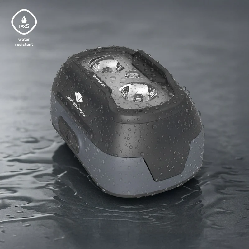 - Wasserfest – Stirnlampe und Akku erfüllen den IPX5-Standard