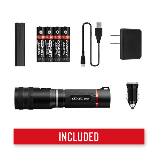 Aufgrund des Qualitätsanspruchs von Coast ist die SX300R-Taschenlampe schlagfest, wetterbeständig und ihre LED ist praktisch unzerbrechlich. Für die SX300R-Taschenlampe gilt die lebenslange Coast-Garantie gegen Material- und Verarbeitungsfehler. Getestet und bewertet nach ANSI/FL1-Standards.