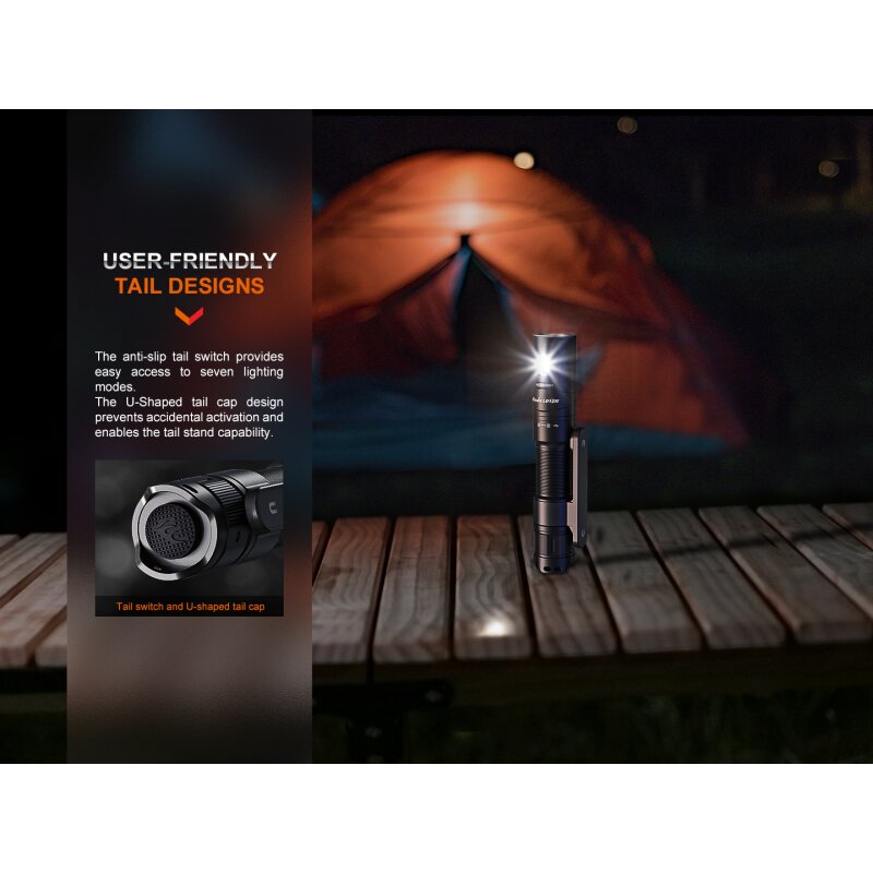 Die Fenix LD12R ist eine kompakte Taschenlampe, die über zwei Lichtquellen verfügt.