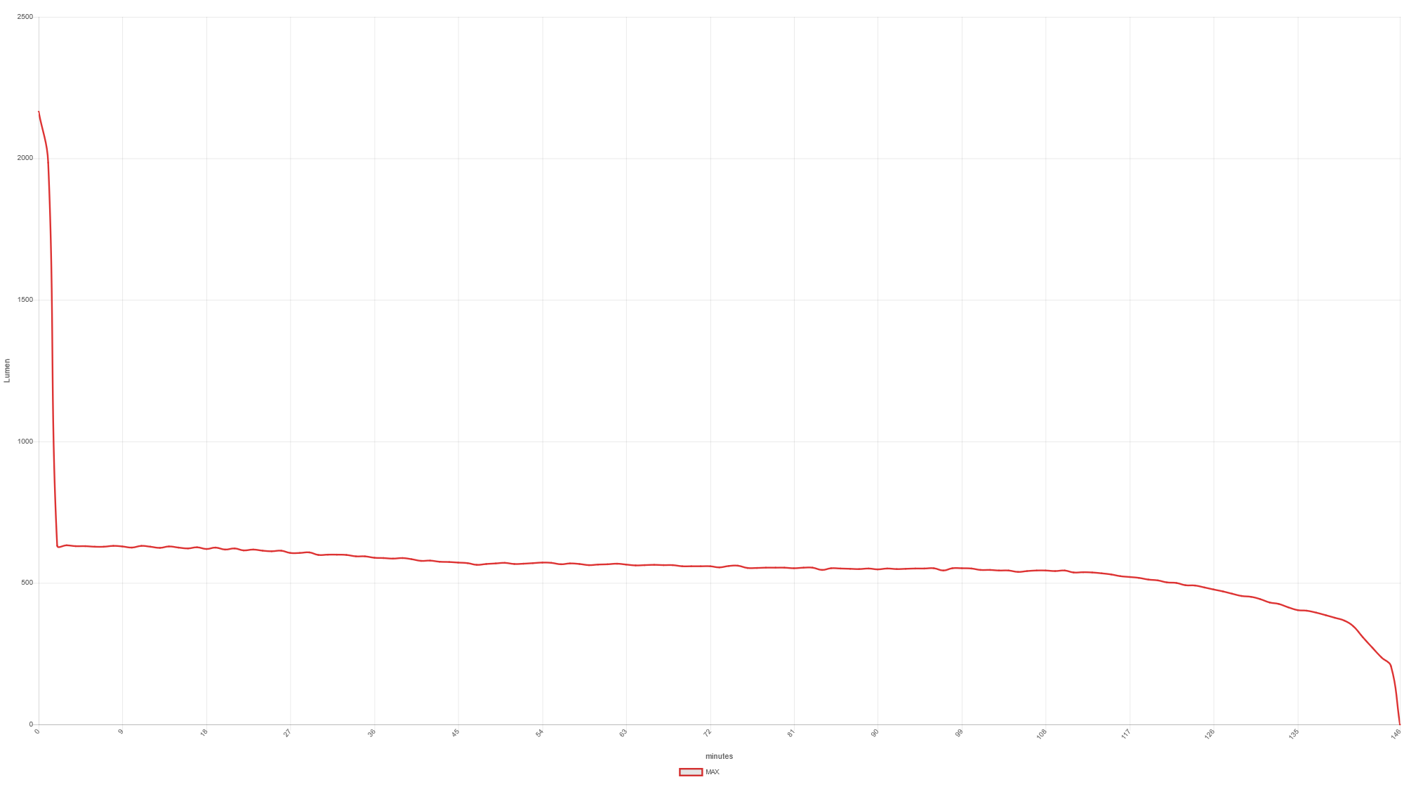 Lichtleistungs- stufen: | Niedrig: 100 lm / Medium: 300 lm / Hoch: 600 / Max: 2000 |