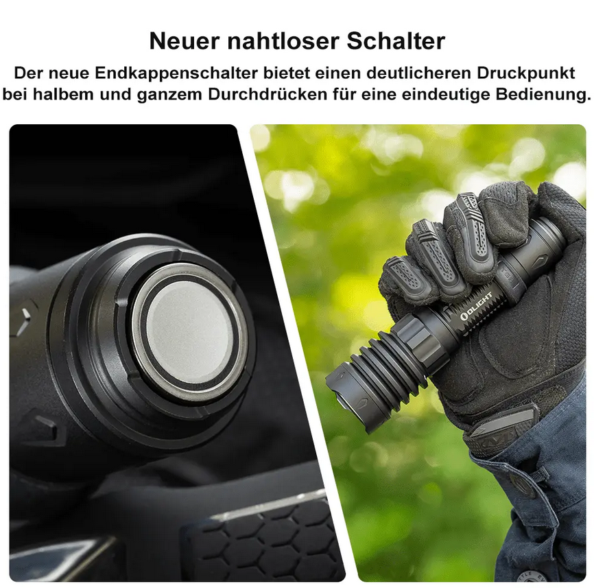 - Programmierbare Modi: Es kann zwischen dem normalen und taktischen Modus gewählt werden, um die Funktionen des Endkappenschalter zu ändern. Im taktischen Modus ist ein Strobe verfügbar