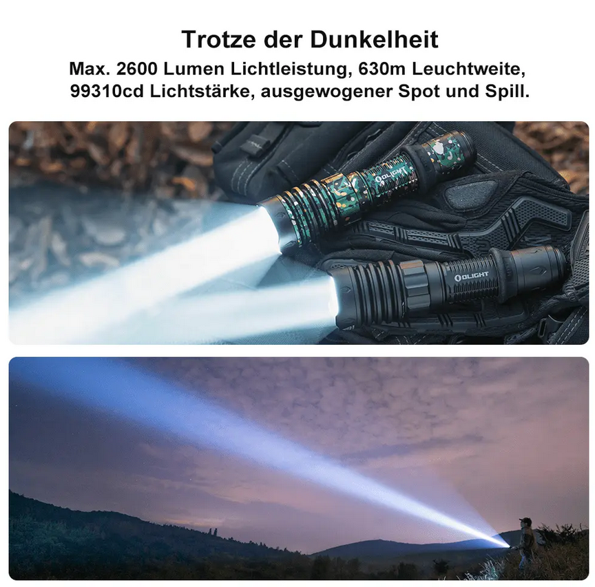 Erleben Sie Licht in einer neuen Dimension – mit bis zu 2600 Lumen und einer beeindruckenden Leuchtweite von 630 Metern ist diese Taschenlampe der perfekte Begleiter für professionelle Einsätze, Outdoor-Abenteuer oder den täglichen Gebrauch.