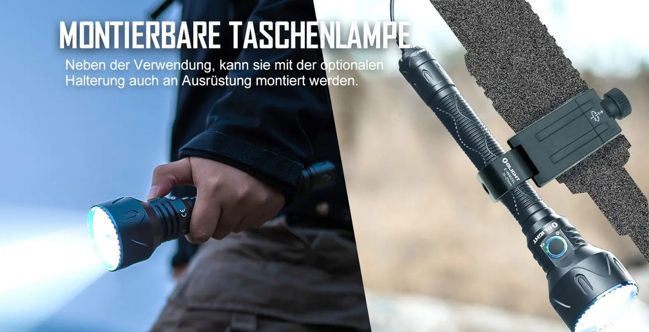 - Durch die unglaubliche Leuchtweite bei hoher Helligkeit eignet sich die Javelot Pro 2 sowohl für die Jagd als auch für die Personensuche