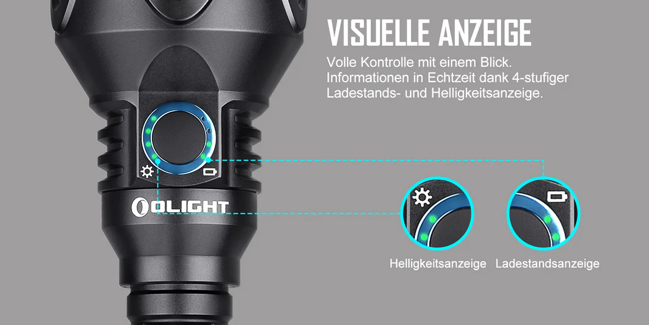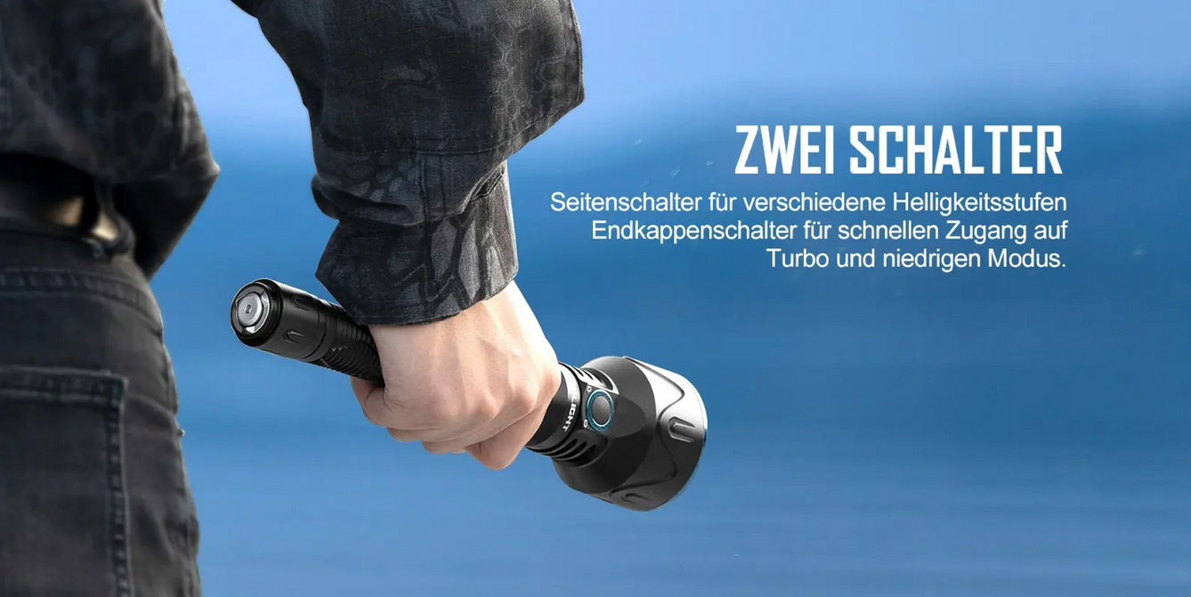 - Zwei Schalter: Über den zweistufigen Endkappenschalter können die wichtigsten Einstellungen besonders schnell erreicht werden und der Seitenschalter ermöglicht eine intuitive Wahl der vier Helligkeitsstufen