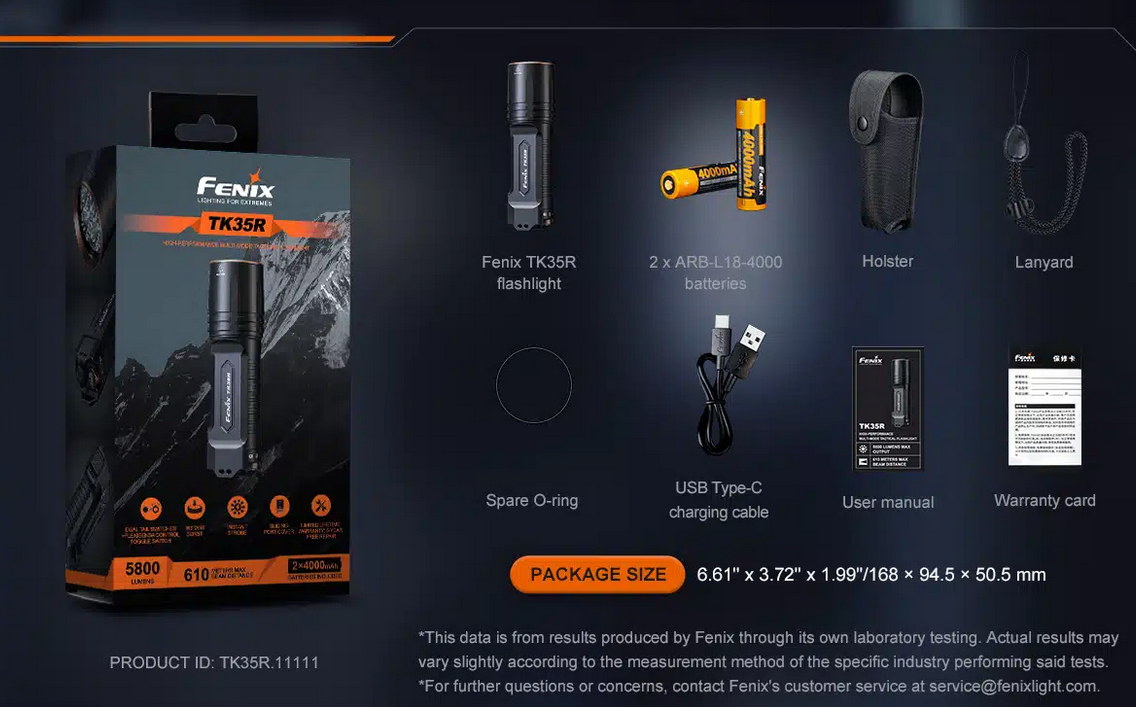Die Fenix TK35R setzt mit einer maximalen Leistung von 5800 Lumen und einer aussergewöhnlichen Reichweite von 610 Metern neue Massstäbe in Sachen Leistung.