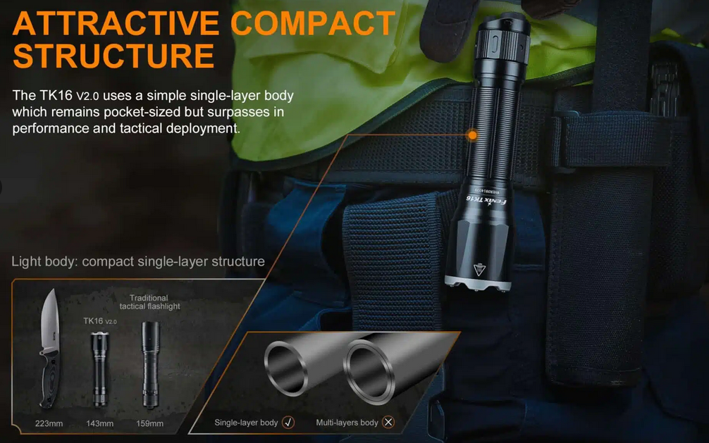 Die Taschenlampe Fenix TK16 V2.0 bietet Funktionen und Leistungen, die sie zu einem zuverlässigen Werkzeug für Einsatzkräfte machen.