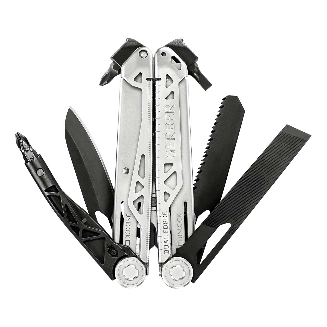 Das Gerber Dual Force verfügt über eine beeindruckende Auswahl an Werkzeugen, die Ihnen bei Ihren Projekten und Aufgaben helfen. Mit einer Kombination aus Zangen, Drahtschneidern, Säge, Messer, Schraubendrehern und vielem mehr bietet dieses Multi-Tool eine umfangreiche Funktionalität, die Ihnen das Leben erleichtert.
