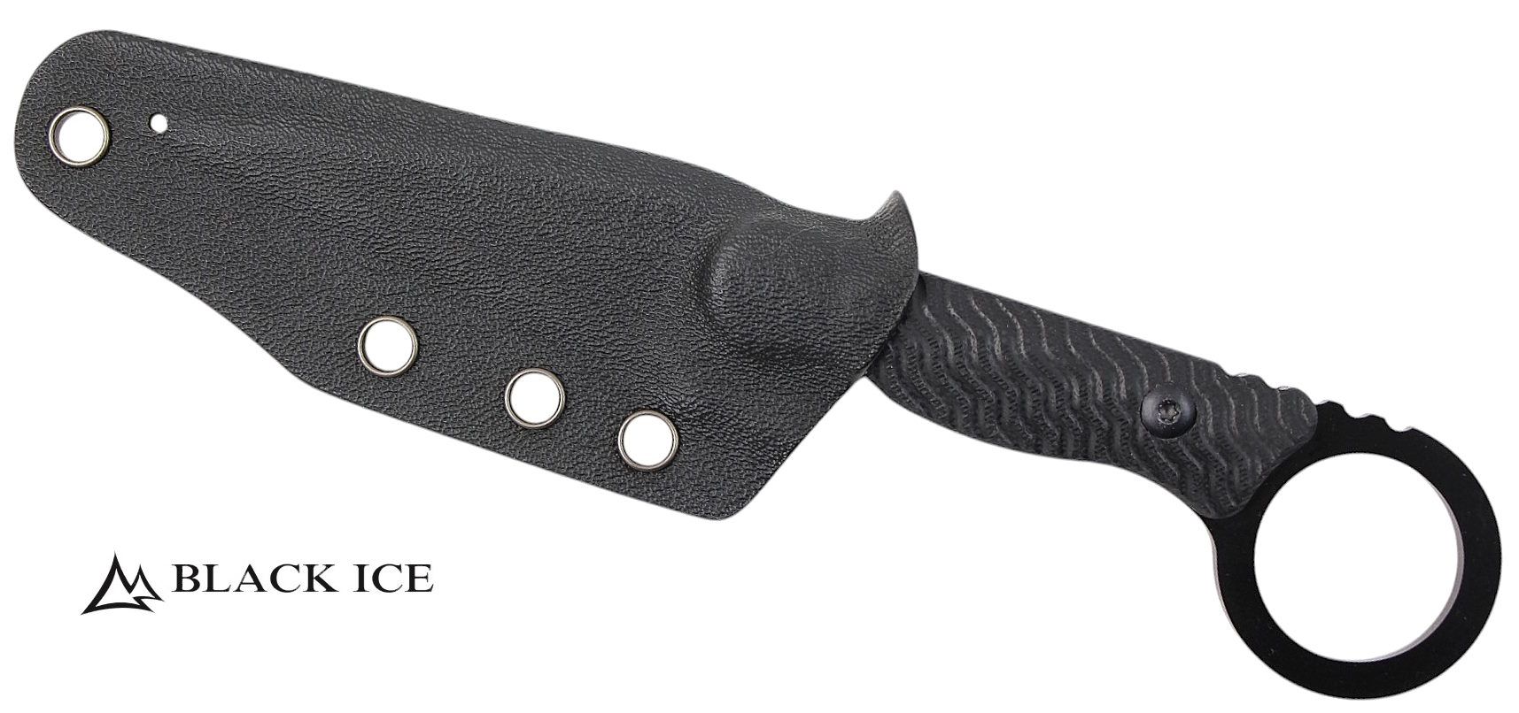 Ein handliches, feststehendes Messer dass typisch für diese Messerart einen großen Ring am Griffende hat, der eine sichere Handlage garantiert und auch als Fangriemenöse verwendet werden könnte. Lieferung mit maßgeschneiderter Kydexscheide um das Messer ggf. auch als Neckknive tragen zu können.