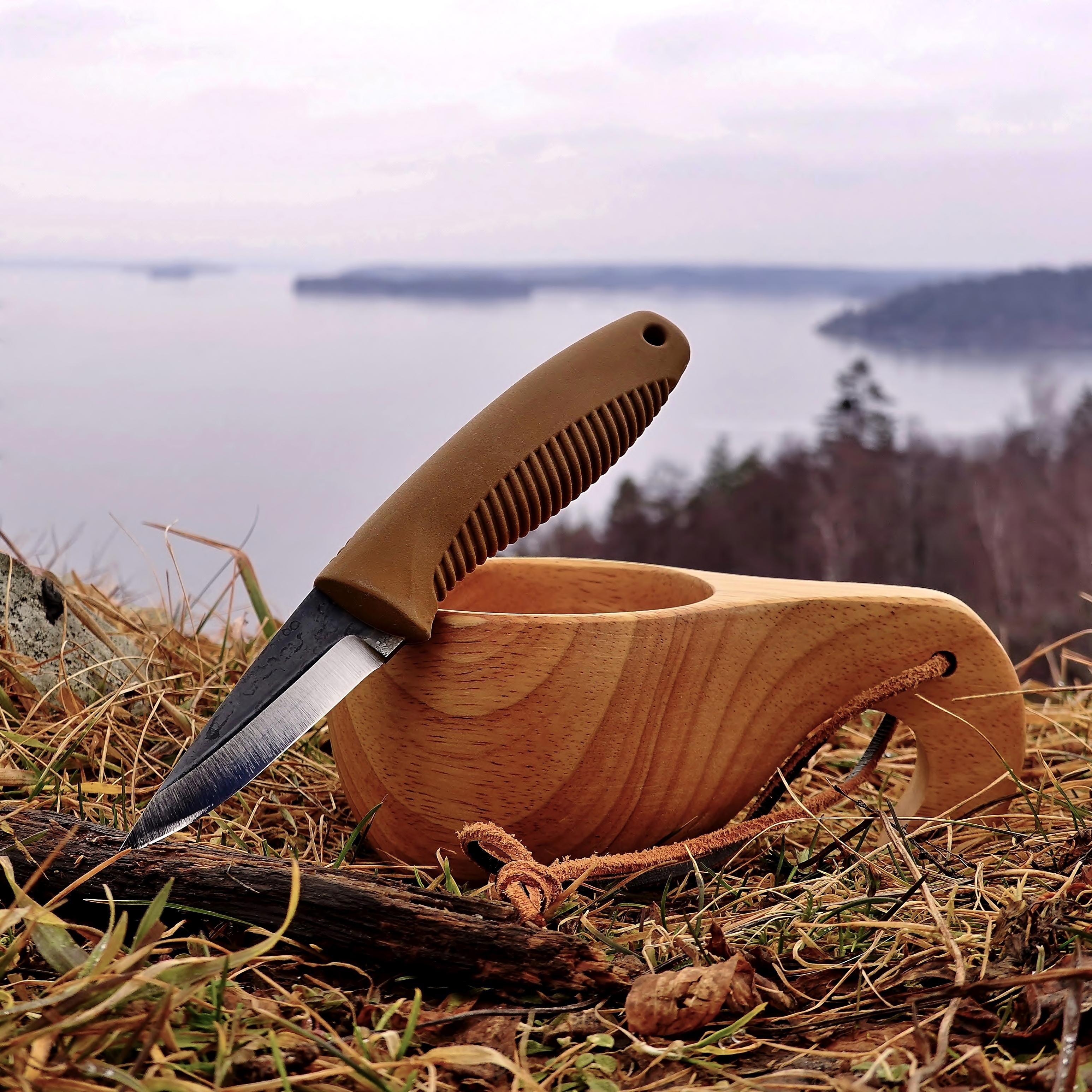 Wir stellen Peltonen-Messer mit beschichteten und unbeschichteten Klingen her, die jeweils für unterschiedliche Zwecke ausgewählt werden. Zu den Beschichtungsoptionen gehören PTFE-Teflon und Cerakote. Die Teflonbeschichtung erfordert nur minimale Wartung, ist verschleißfest und für die Verwendung in Lebensmitteln zugelassen. Im Gegensatz dazu bietet die Cerakote-Beschichtung einen hervorragenden Korrosionsschutz und ermöglicht die Verwendung von Farben. Eine unbeschichtete Klinge stellt eine sehr traditionelle finnische Klingenausführung dar und erfordert die meiste Pflege. Ein Messer sollte immer mit dem Respekt gepflegt werden, den es verdient. Trocknen Sie es nach dem Gebrauch gut ab und ölen Sie die Klinge regelmäßig. Ein Messer aus Kohlenstoffstahl kann z. B. mit einem Schleifstein geschärft werden.