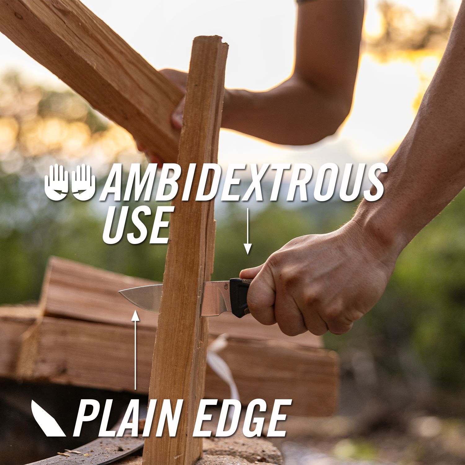 Dieses leichte, handliche Messer mit feststehender Klinge wurde für Aufgaben wie das Herstellen von mehr Anzündholz für das Feuer oder grössere Arbeiten wie das Schneiden von Paracord entwickelt.