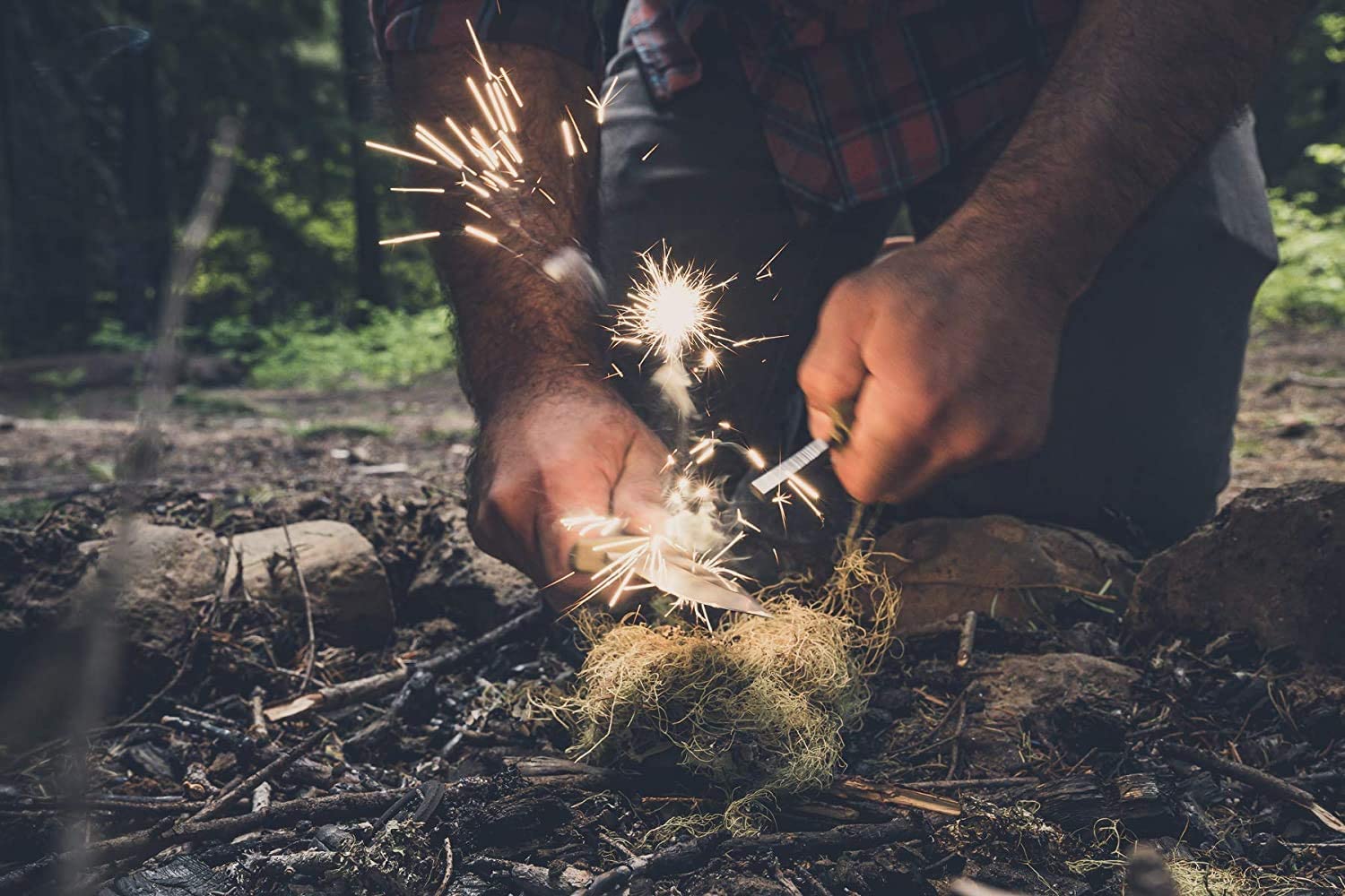 - Inklusive praktischem Schleifstein und Feuerstarter