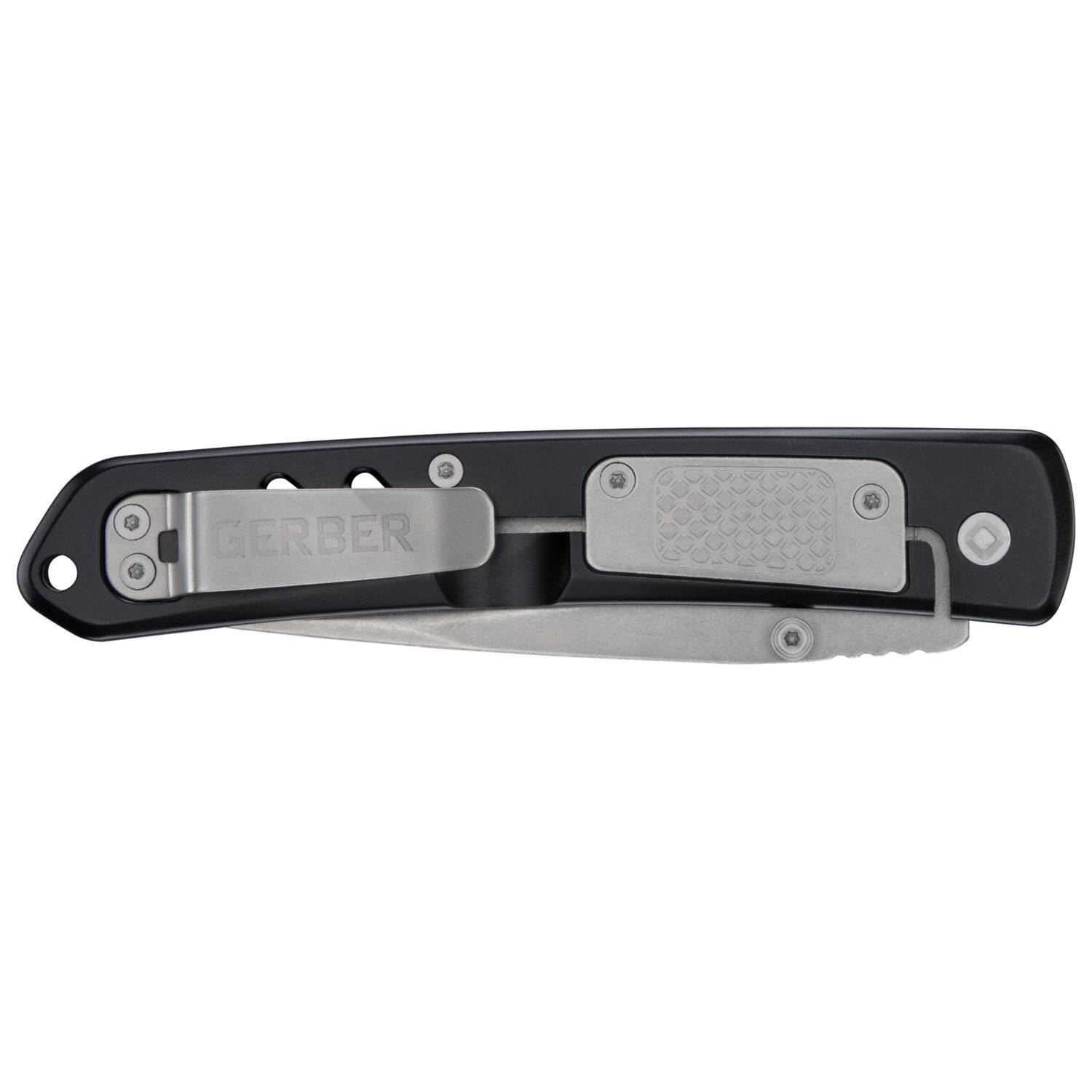 Rank und schlank: Hier kommt das Einhandmesser Gerber AFFIRM. Die lange Clip Point-Klinge aus rostfreiem Stahl 7Cr17MoV verriegelt per Frame Lock und lässt sich spielend leicht per beidseitigen Daumenknöpfen öffnen. Das Skelettdesign der Frontgriffschale aus Aluminium macht das AFFIRM zu einem echten Hingucker. Eine Verstärkungsplatte am Frame Lock sorgt für zusätzliche Griffigkeit und hilft, dass der Frame Lock auch langfristig optimal arretiert. Ein Taschenclip ermöglicht flexible Befestigung.