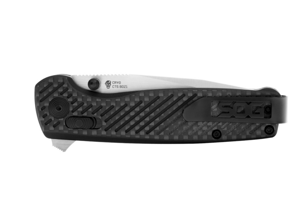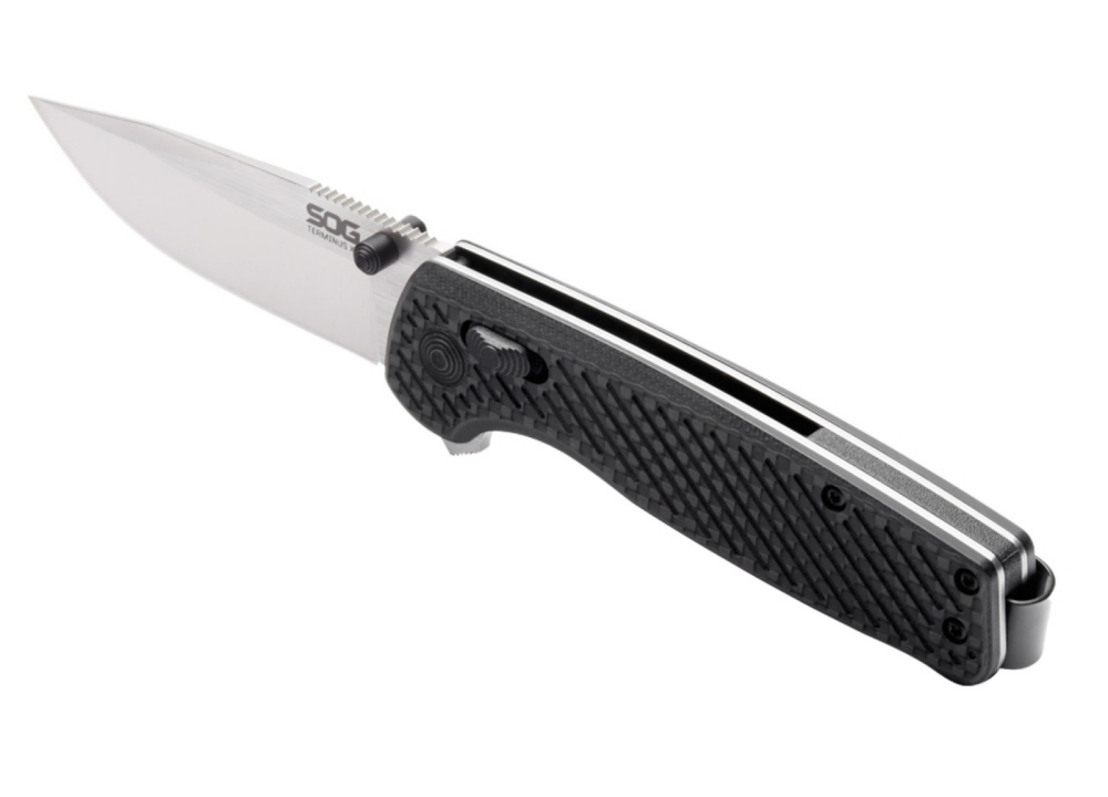 SOG Terminus ist ein ideales EDC Klappmesser - für den alltäglichen Einsatz gemacht. Ein schlichtes und robustes Klappmesser das sich mit einer Hand öffnen und schliessen lässt. Mit Griffschalen aus leichter Kohlefaser und einer XR-Arreiterung. Eine äusserst belastbarer Verschluss. Mit Clip und Daumennocken.