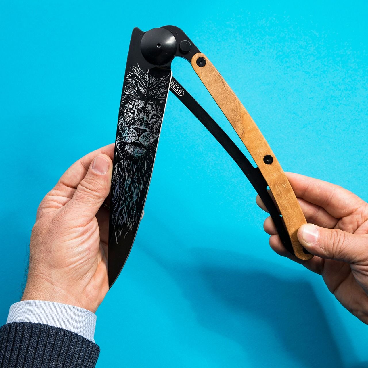 Produktinformationen "Deejo Klappmesser XXL - Löwe Olivenholz 390G"