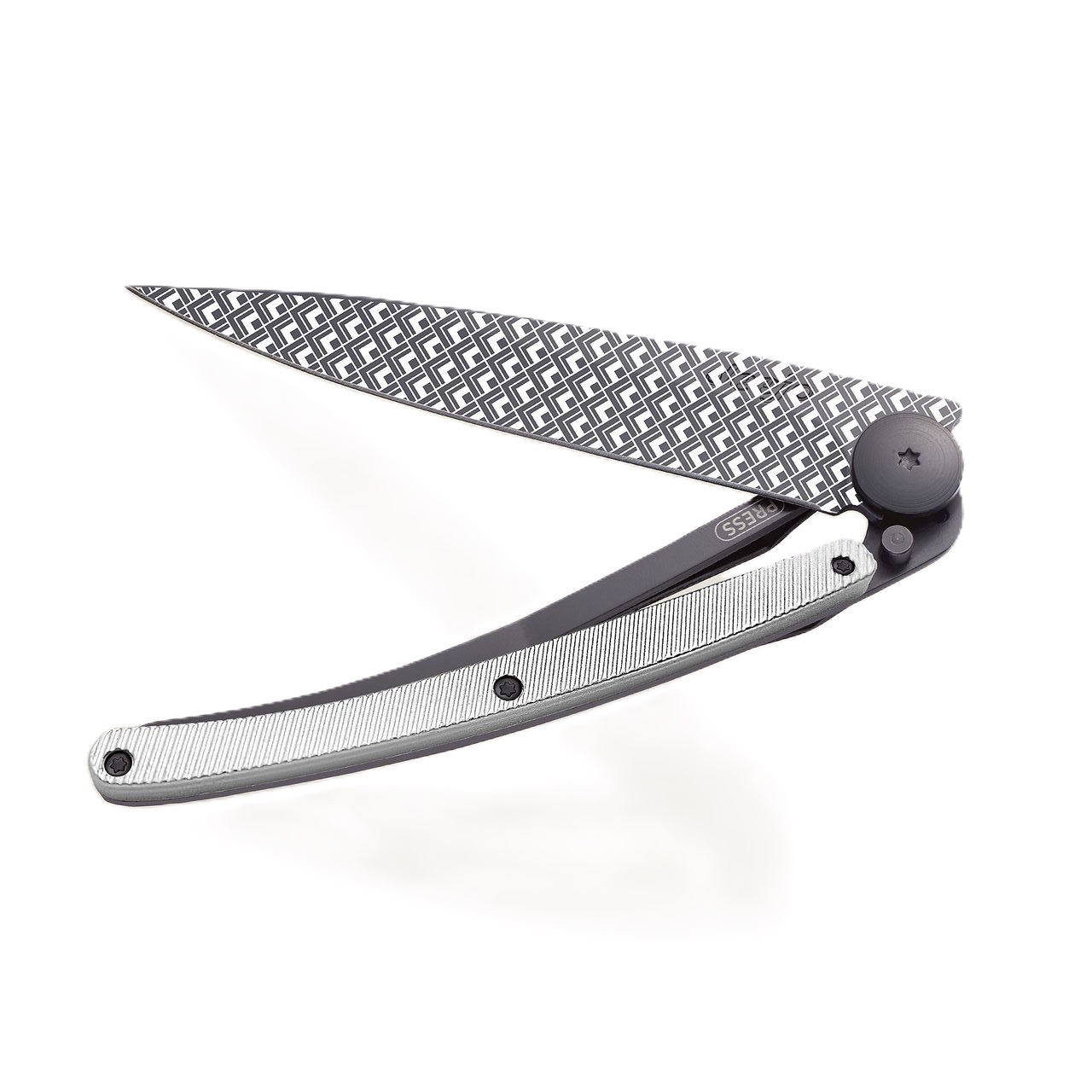 Deejo Klappmesser - Quadratic hellgrau Aluminium 37g