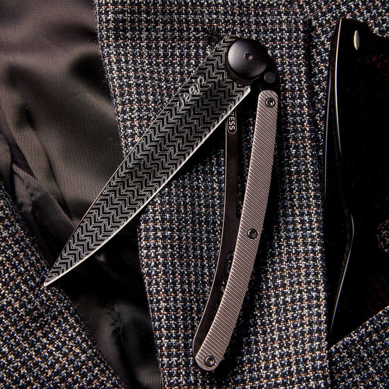 Dieses Deejo-Messer ist mit einem Griff aus matt gefärbtem Aluminium verziert. Dieses ausgesprochen moderne Material bewahrt die Leichtigkeit Ihrer liebsten feinen Klinge und verbessert Ihren Deejo mit seltener Eleganz