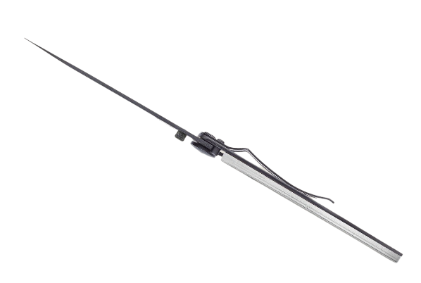 Dieses Finish, das durch die Befestigung von schwarzem Titan auf einer Edelstahlbasis erhalten wird, hat einen doppelten Vorteil. Erstens verstärkt es die Oberflächenbeständigkeit gegen Stöße und Kratzer, und zweitens macht es die eleganten Linien Ihres Messers erhaben, indem es subtile matte schwarze Reflexionen anbietet Als dezente par excellence erwerben der Stahl im Laufe der Jahre eine leichte Patina, um dieses schöne Stück Besteck weiter zu verstärken.