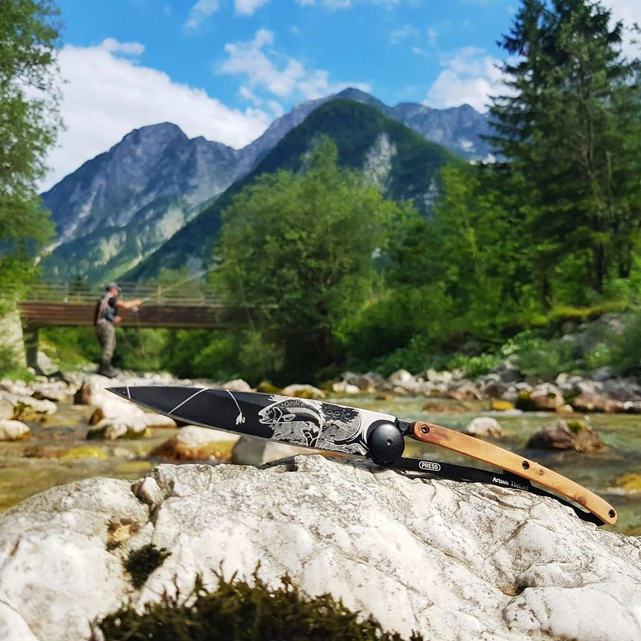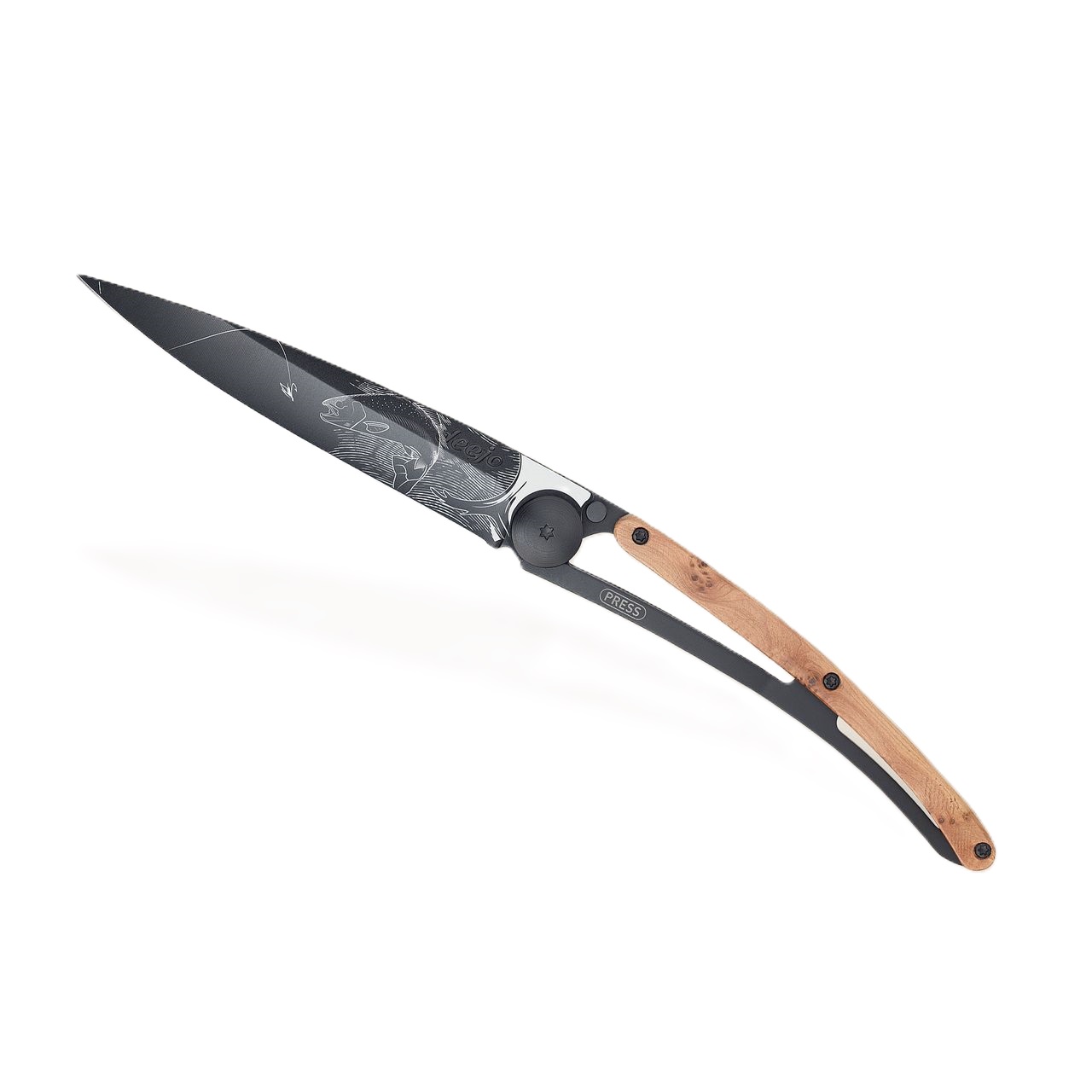 Deejo Klappmesser - Forelle Wacholderholz 37g