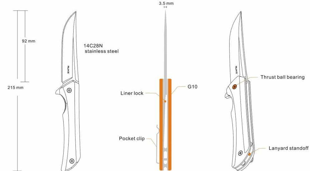 Das Ruike P121-B ist aus rostfreiem Stahl 14C28N gefertigt und liegt gut in der Hand. Dank seiner hochwertigen Materialien ist es ein robustes und langlebiges Messer. Die Klinge lässt sich dank des Kugellagers am Drehpunkt leicht von Hand ausklappen.