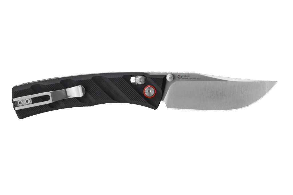 Die Klinge des P856 besteht aus rostfreiem 14C28N-Stahl, bekannt für seine Korrosionsbeständigkeit, lange Schnitthaltigkeit und eine Härte von HRC57–59. Die Drop-Point-Form in Kombination mit einer scharfen Schneide ermöglicht einen effektiven und direkten Schnitt, ideal für ein breites Einsatzspektrum.