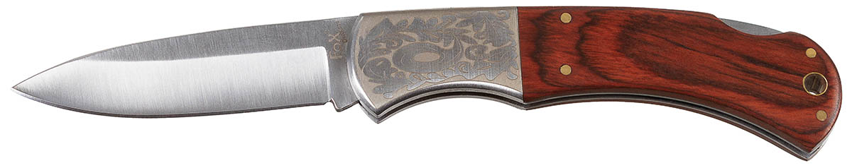 Klinge aus 3Cr13 Stahl mit Glattschliff Back-Lock Arretierung verzierter Metallgriff mit Holzgriffschalen (Holzmaserung und -farbe kann abweichen!) Befestigungsöse am Griffende Gesamtlänge: ca. 21 cm Klinge: ca. 8,5 cm Klingenstärke: ca. 2,8 mm Gewicht: ca. 160 g