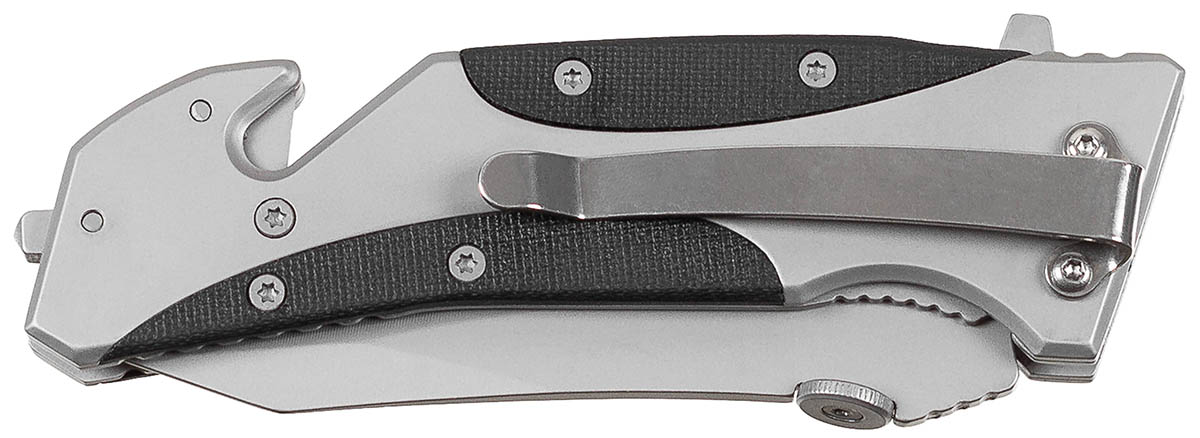 Klinge mit Glattschliff, beidseitigem Daumen-Pin und Flipper-Öffnungshilfe Liner-Lock Arretierung Metallgriff mit Kunststoffeinlagen, Gurtschneider und Glasbrecher ergonomisch geformt Metallgürtelclip Gesamtlänge: ca. 20 cm Klinge: ca. 8,5 cm Klingenstärke: ca. 2,8 mm Gewicht: ca. 170 g
