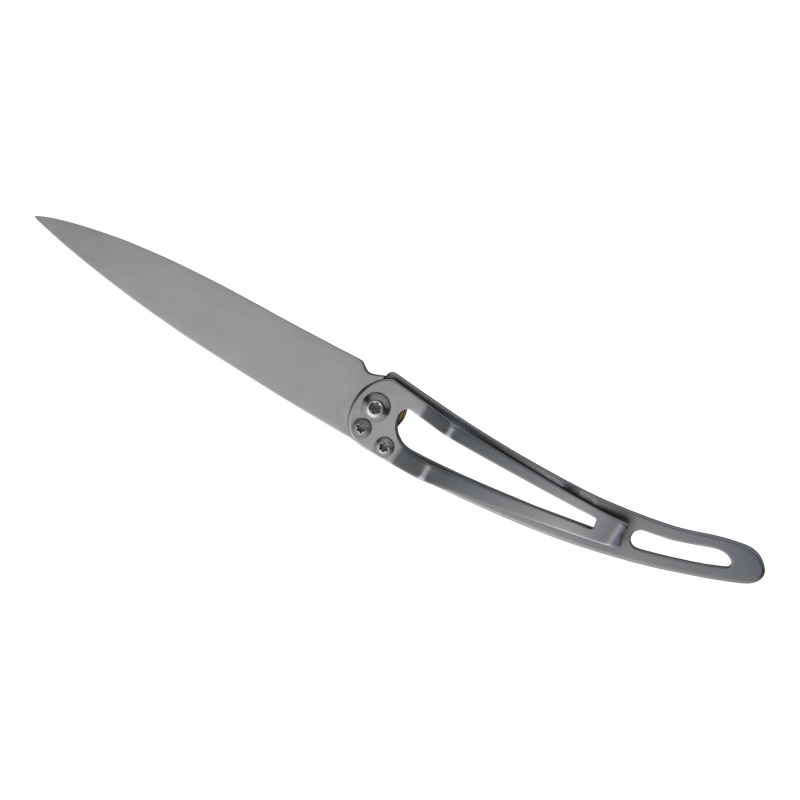 Ultraleichtes Messer aus 420er Edelstahl mit Titan-Beschichtung. Klinge mit ‚Liner-Lock‘ Sicherheitssperre. Gürtelclip. Gewicht: 27 Gramm Material: 420er Edelstahl Abmessungen: 9cm (geschlossen) / 17cm (geöffnet) / Klingenlänge 8cm / Breite 0,9cm