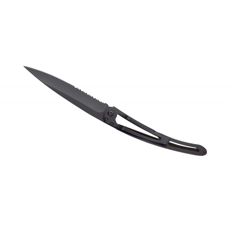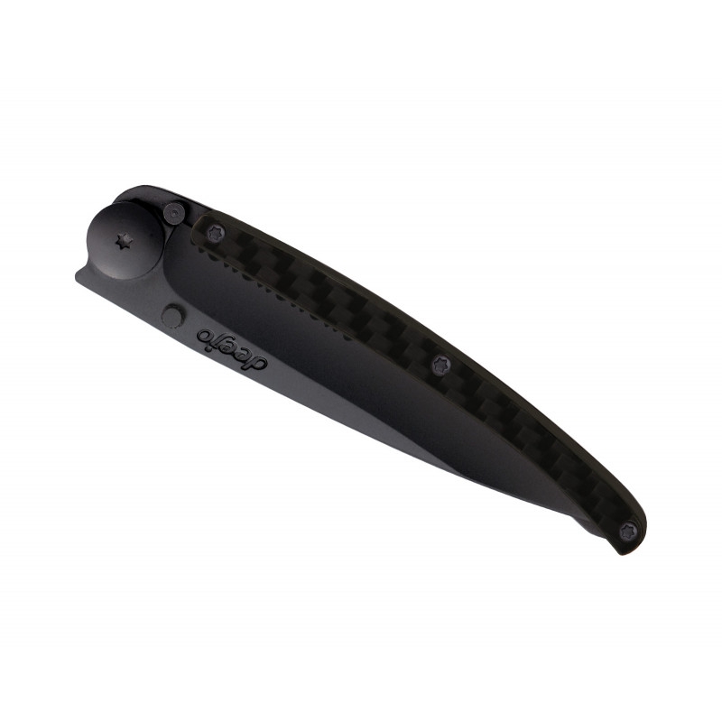 Ultraleichtes Messer aus 420er Edelstahl mit matter Oberfläche. Halbseitig gezahnte Klinge mit ‚Liner-Lock‘ Sicherheitssperre. Öffnen/Schließen mit einer Hand. Gürtelclip. Der Griff ist mit Kohlefaser besetzt.Gekennzeichnet durch seine geringe Dichte, hohe Zug- und Druckfestigkeit und eine ausgezeichnete chemische Inertheit wird Kohlefaser auch für seine ästhetischen Eigenschaften geschätzt. Dies macht es natürlich zu einem idealen Material für unsere schönsten Deejo.