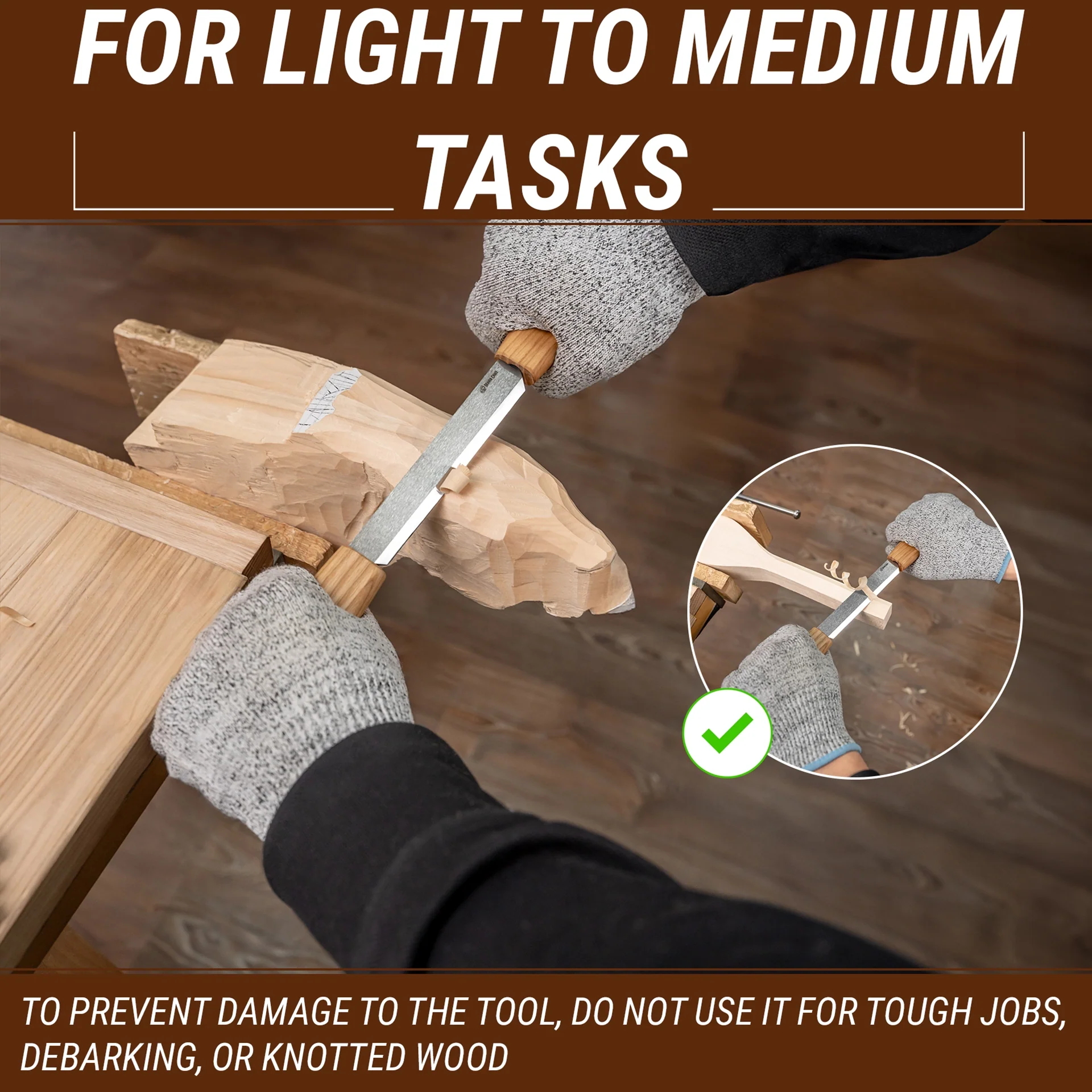 Ein Zugmesser (Ziehmesser, Ziehmesser, Schermesser) formt Holz, indem es Späne entfernt. Dieses Zugmesser ist ein perfektes Werkzeug zum Entfernen kleinerer Holzscheiben für flache, facettierte Arbeiten. Dieses Rasiermesser ist zum Planen facettierter Teile oder zum Formen eines kleinen Kreises konzipiert. Die Klinge hat eine Stärke von nur 3 mm, da dieses Messer für die Ausführung filigraner Arbeiten konzipiert ist. BeaverCraft bietet Ihnen eine exklusive Lederscheide für das Zugmesser. Haben Sie keine Angst davor, sich beim Herausziehen des Messers aus der Verpackung zu schneiden, denn Ihr Werkzeug verfügt über eine Messerscheide aus Leder.