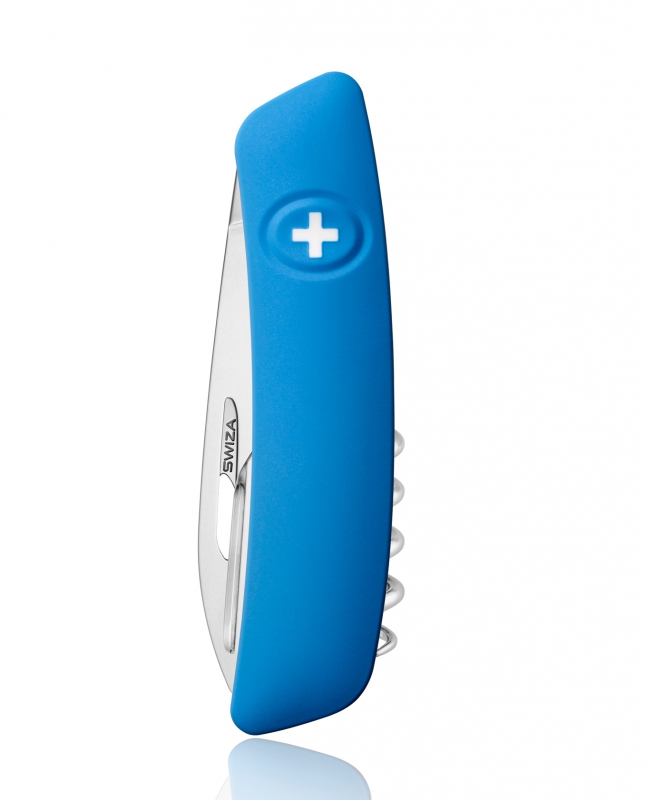 Die 75 mm lange Klinge ist aus Edelstahl 440 / 57 HRC gefertigt, und besteht aus einer Chrom-Molybdän-Legierung. Sie besitzt eine professionelle und dauerhafte Schneidfähigkeit. Neben ihrer Robustheit steht vor allem die Sicherheit im Vordergrund: Zum Entsichern und Schliessen der Klinge ist das SWIZA Kreuz zu drücken. Die durchgehende Ausstanzung ermöglicht ein für Rechts- und Linkshänder optimiertes Öffnen.