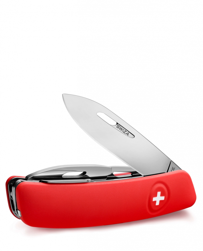 Die 75 mm lange Klinge ist aus Edelstahl 440 / 57 HRC gefertigt, und besteht aus einer Chrom-Molybdän-Legierung. Sie besitzt eine professionelle und dauerhafte Schneidfähigkeit. Neben ihrer Robustheit steht vor allem die Sicherheit im Vordergrund: Zum Entsichern und Schliessen der Klinge ist das SWIZA Kreuz zu drücken. Die durchgehende Ausstanzung ermöglicht ein für Rechts- und Linkshänder optimiertes Öffnen.